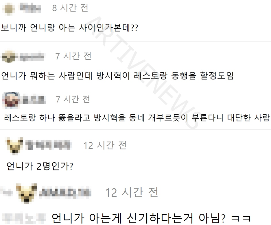 언니가 방시혁 의장님과 아는 사이라 의장님한테 물어봐달라고 했는데 그 사람이 사칭범이었다고 했다. 이어 그 사칭범은 감옥에 갔고 저 말고도 피해자가 있던 중대한 사건이라 자료 수집을 도우며 실제로 뵌 적도 없는 방 의장이 저라는 사람을 처음 알게 됐다고 말했다.