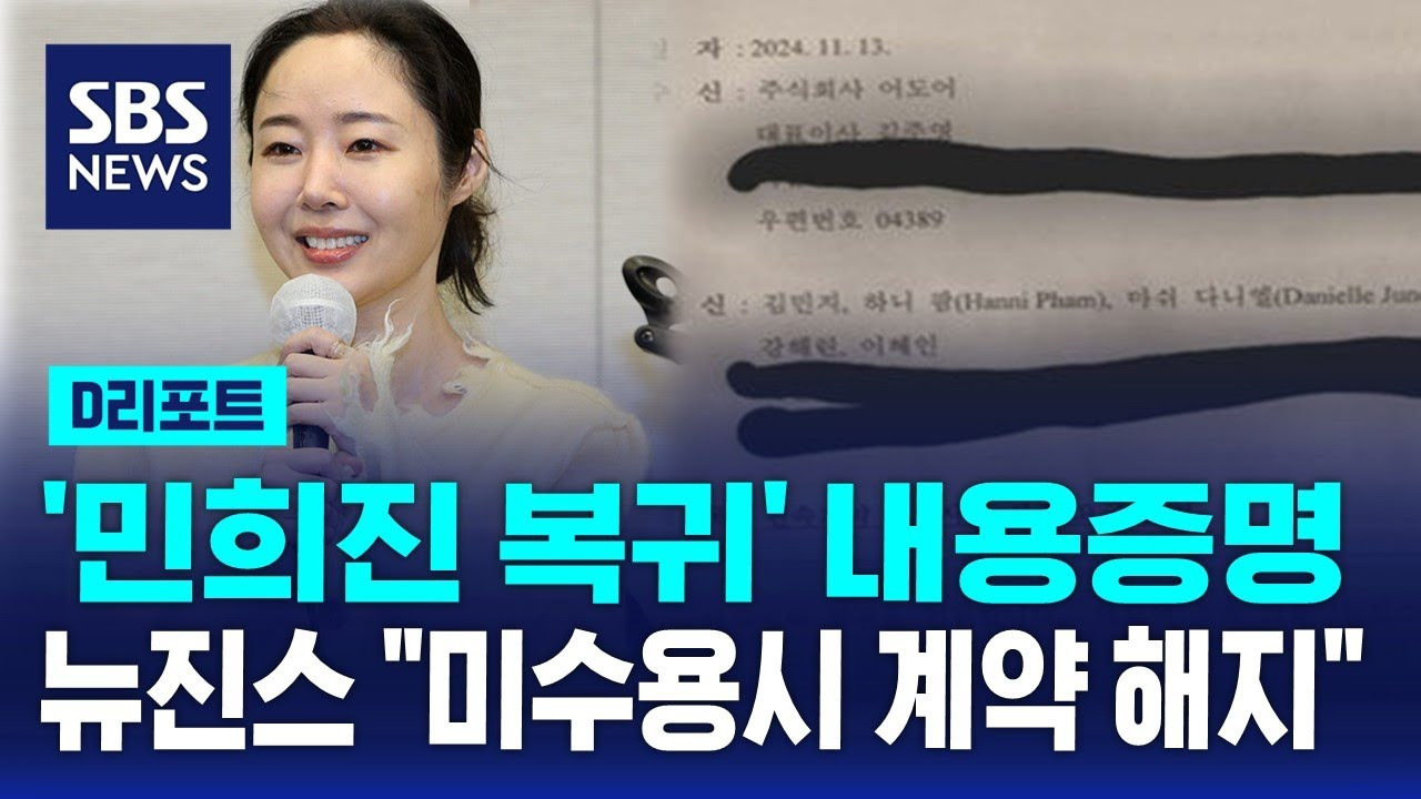 [2] SBS 뉴스 - [D리포트] '민희진 복귀' 내용증명…뉴진스 "미수용시 계약 해지" (https://news.sbs.co.kr/news/endPage.do?news_id=N1007872240)