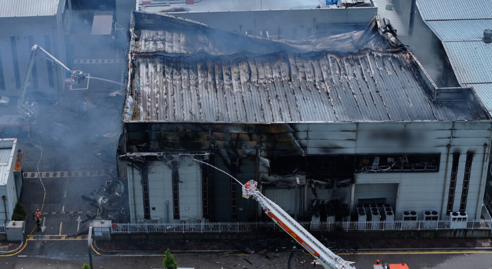불은 해당 건물 2층에 보관중이던 배터리 셀에서 시작된 불이 연쇄 폭발하면서 걷잡을 수 없이 번진 것으로 파악된며, 불길이 워낙 거센 데다, 리튬전지에 난 불은 일반 화재와 달리 물로는 진화가 안돼 불이 붙은 배터리가 완전 연소 되기만을 기다리는 상황이다.