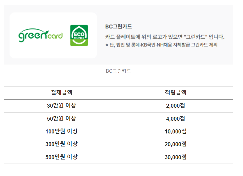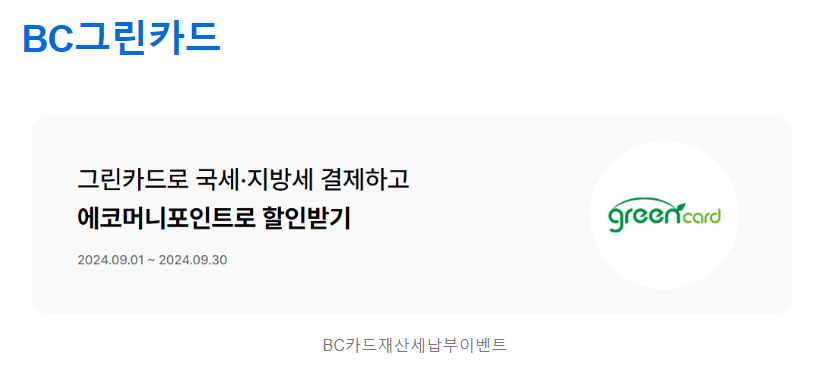 - 이벤트 내용 : 마이태그 후 BC그린카드로 국세, 지방세 결제시 에코머니 포인트 적립 (24.10.31 포인트 적립)