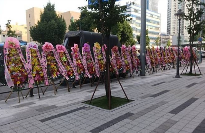 이번 화환 시위는 슈가 탈퇴에 동의하는 개인 팬들이 모여 진행한 것으로 전해졌다.
