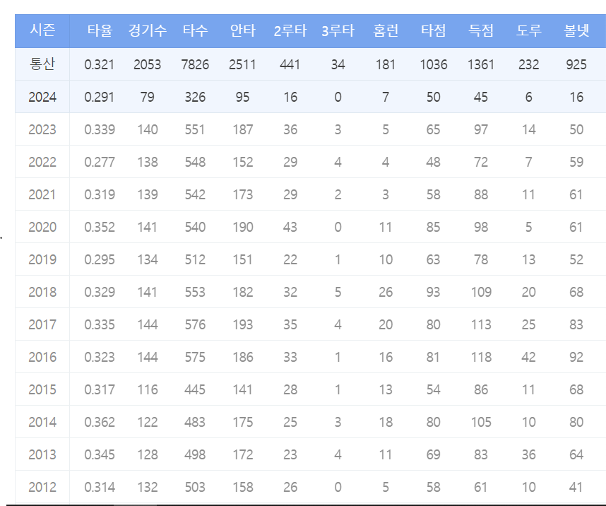 손아섭 2024 시즌 기록