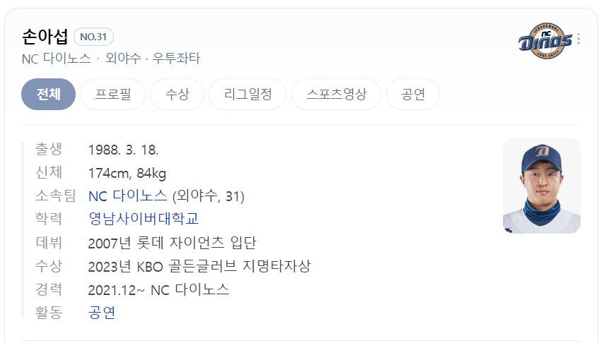 손아섭 프로필 보러가기