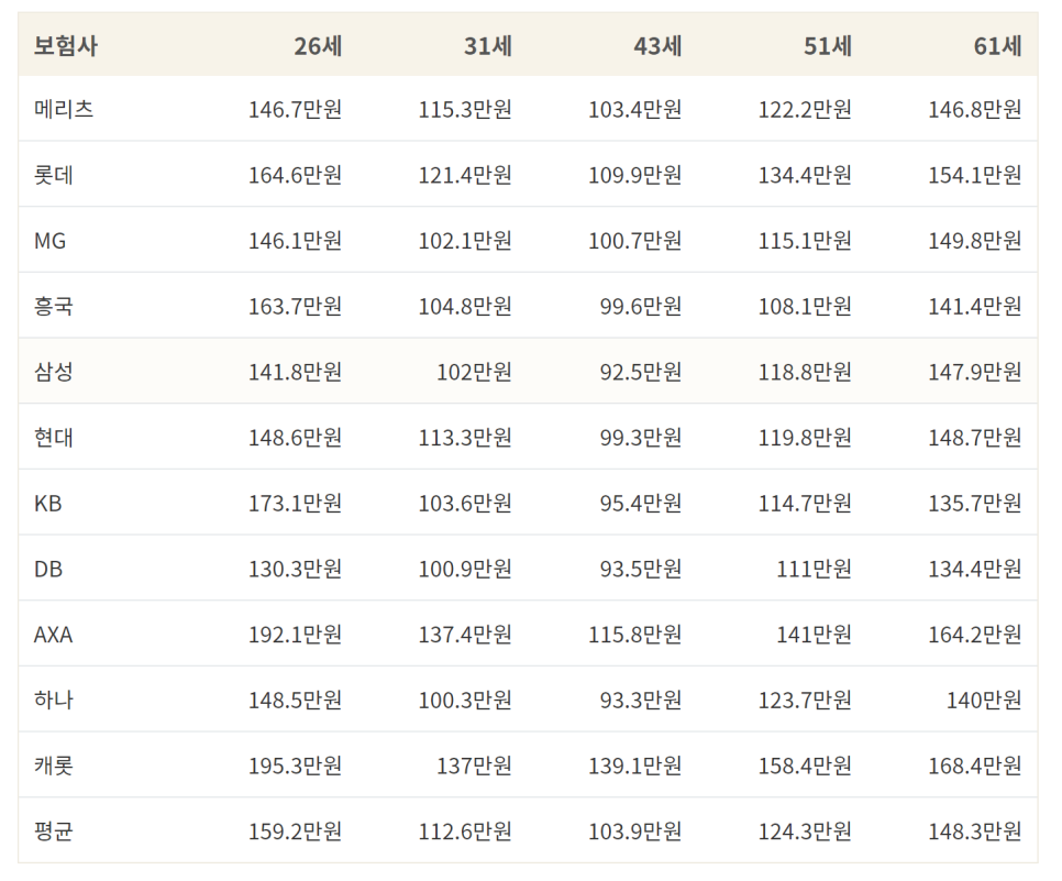 이 표는 다양한 보험사에서 제공하는 자동차 보험의 보험료를 비교한 것이에요. 각 보험사의 기본 보장 내용과 추가 보장 옵션을 잘 살펴보면 자신에게 맞는 상품을 선택할 수 있어요.